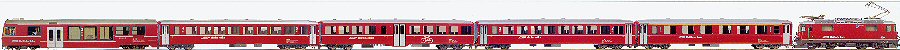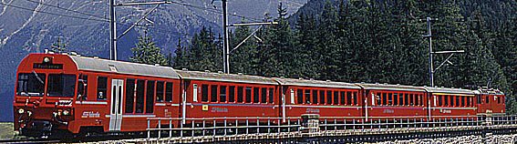 The centrepiece of the Scuol-Vereina-Landquart and the the Scuol-Samedan-Pontresina services 'the new rail travel system' were the newly bought low floor driving trailers BDt1751-1758, which were provided by Stadler Altenheim. In the course of the last few years the Zuglauf-Scuol-Landquart and also the Chur-Reichenau and Ilanz up to Disentis routes saw extended use of the 'new' the driving trailers. At the present time the driving trailers are being used for the Scuol-Pontresina regional traffic (with Ge4/4II) and Landquart- Davos (with Ge4/4III, and additionally in the winter of 2008-2009 with Ge4/4II). |