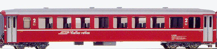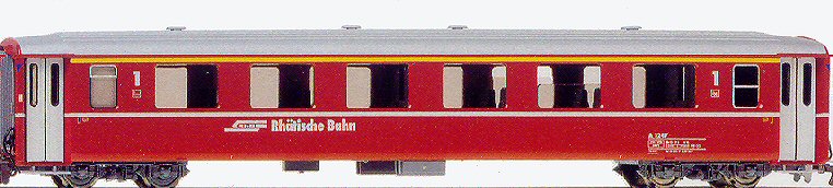 For the remainder of NEVA Retica trains the RhB refitted existing coaches and equipped the trains from the following stock: AB1519-1526 ; A1243-1250; AB1527-1534 ; B2290-2297. They specially introduced blue brake edges to indicate the emergency vacuum brakes and telephone 'station-to-driver'. |