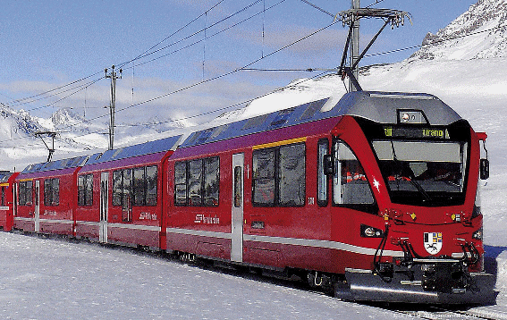 | Due to their powerful drives these EMUs can haul loads of up to 140t on the steep Bernina line |
