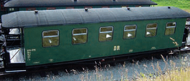 Two more green coaches, in DR livery and one in the adjacent Pressnitztalbahn livery.