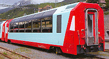 "Bernina Express" panoramic coaches in current 2011 livery with logo under wide trim strips