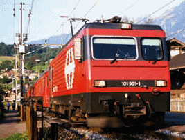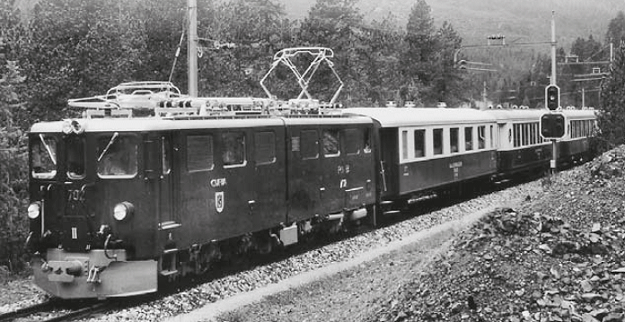 Typical trains were a HGe4/4II 101 locomotive, and six coaches