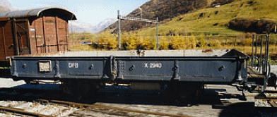 In 1986 the DFB put into service, two ex RhB steel wall Low-sided Wagons Kkl 7040 & 7048.