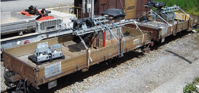 Train for the transport of large stones suitable for the construction of flood protection defenses
