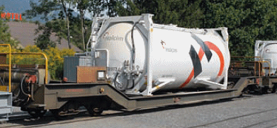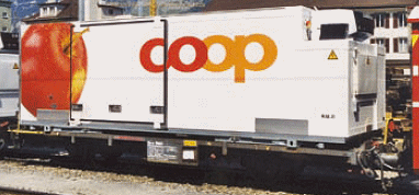This is the eleventh "Co-Op" model of refrigerated container wagons. |