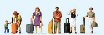 Standing travellers with wheeled suitcases