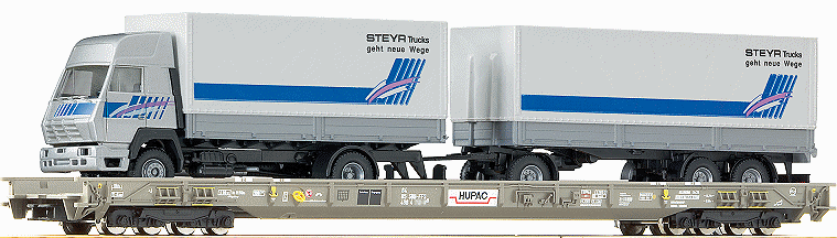 SBB HUPAC wagon with a "Steyr " Lorry load